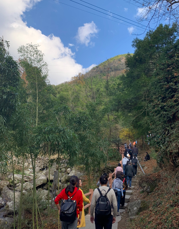 大家游览了江南最大的瀑布群——藏龙百瀑,堪称“江南一绝”。众人一路拾阶而上,登高领略林木葱茏、流泉飞瀑的自然风光,也感受到了或气势恢宏、或纤巧奇妙的生态美景。