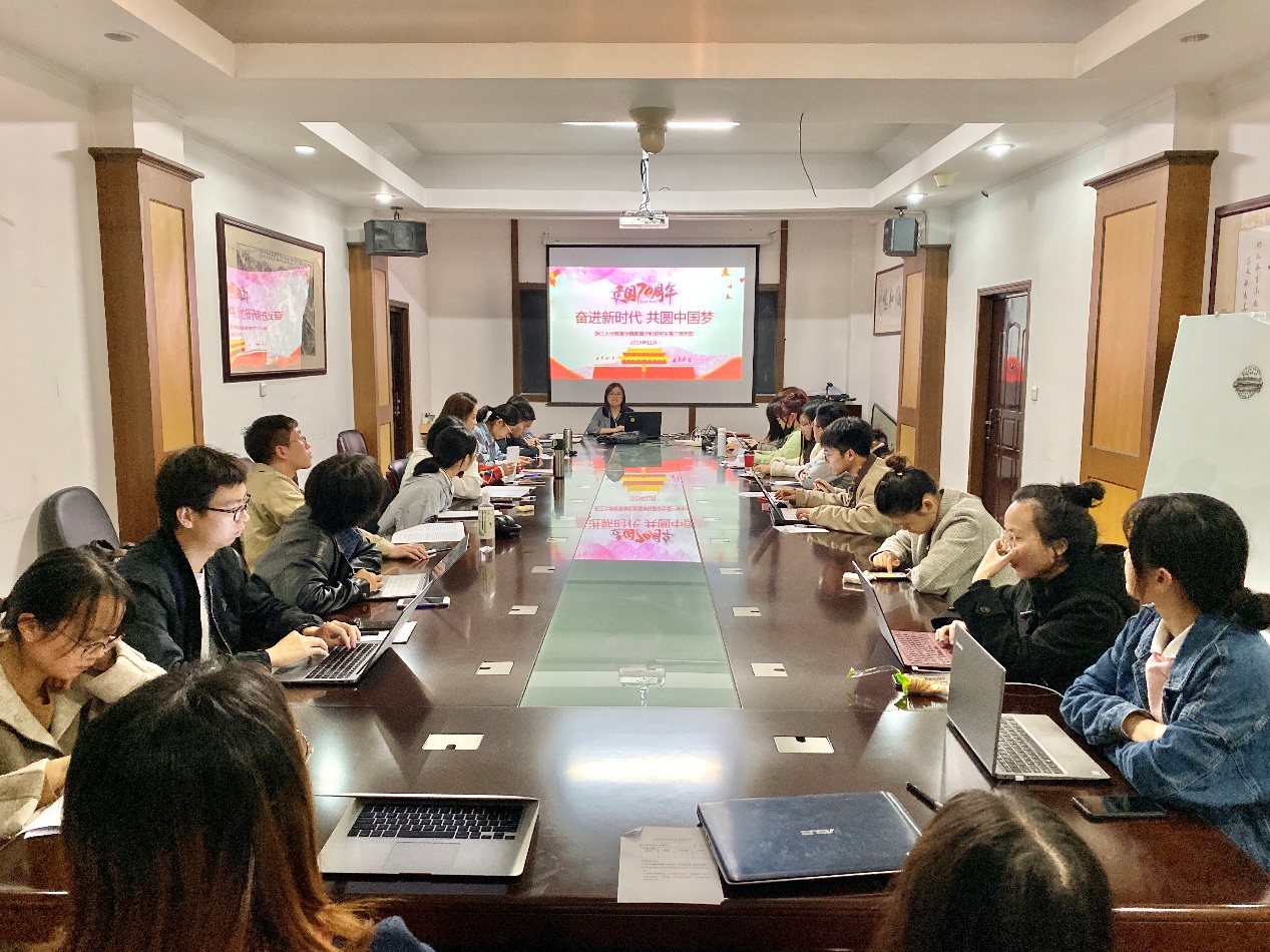 接着,蒋闰婧为全体成员开展题为《奋进新时代 共圆中国梦》的“不忘初心 牢记使命”主题教育活动系列之书记讲党课活动。讲课过程中,蒋闰婧以我国发展的不同阶段作为党课引入,以“感受七十年沧桑巨变——如果奇迹有颜色,那一定是中国红!”视频观看为依托,讲述了新中国成立以来我国取得的各项成就。随后,蒋闰婧以“作为新时代的青年,我们该怎么做?”一问为引,介绍了入党、发展及转正工作的相关流程,强调在新时代背景下,党员同志需围绕“党员意识、担当作为、服务群众、遵守纪律、作用发挥”五个方面真正发挥先锋模范作用。