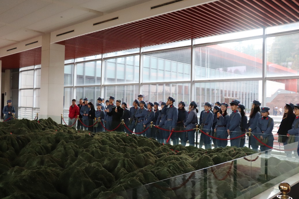 下午,培训班的同学们首先集体参观了井冈山革命博物馆。在博物馆中,一幅幅历史画卷借助历史遗物生动的展现在学员的面前,照片、实物、事迹,在讲解员的带领下同学们仿佛置身于那个动荡的年代,眼前仿佛看到了奔跑在山头、即使只有一颗炮弹也决不放弃的红军战士们。由此同学们进一步感受到共产党员们英勇献身、创造奇迹的革命史诗,进一步了解了井冈山革命斗争的艰难。而后,同学们满怀敬仰之情,前往井冈山革命烈士陵园。在革命烈士长眠的地方,集体敬献花圈,重温入党誓词,向前辈致敬,将信念扎根。