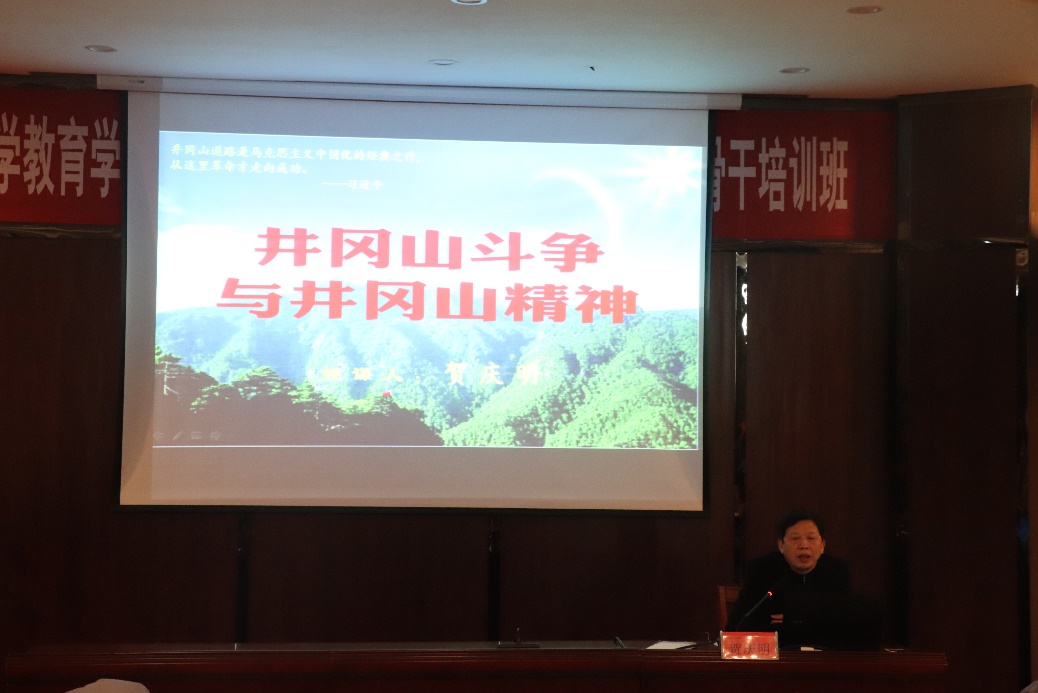 井冈山上红旗飘,斗争精神时代传。井冈山革命传统学院副院长贺庆明老师随后为同学们进行了主题为《井冈山斗争与井冈山精神》的专题教学。贺老师在教学中系统讲述了井冈山红色革命根据地的由来,以及在这片土地上发生的大大小小的革命故事,向我们展示了老一辈共产党员英勇抗争、勇于创新的精神风貌,也宣扬了新时代井冈山革命精神的新形态,新价值。