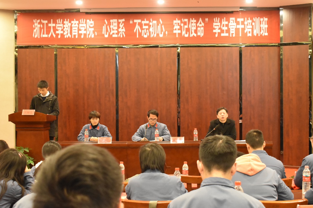 寒风虽然凛冽,热情更为高涨。11月30日早上6:10到达了井冈山车站,同学们便马不停蹄地赶往培训基地。上午9:00,开班仪式于井冈山传统革命学院一楼大教室举行,本次仪式由教育学院兼职辅导员林文平老师主持,出席此次开班仪式的有浙江大学心理行为与科学系兼职辅导员刘莹莹老师,井冈山革命传统教育学院副院长贺庆明老师,以及基地带班老师、培训班班主任余文浩老师。