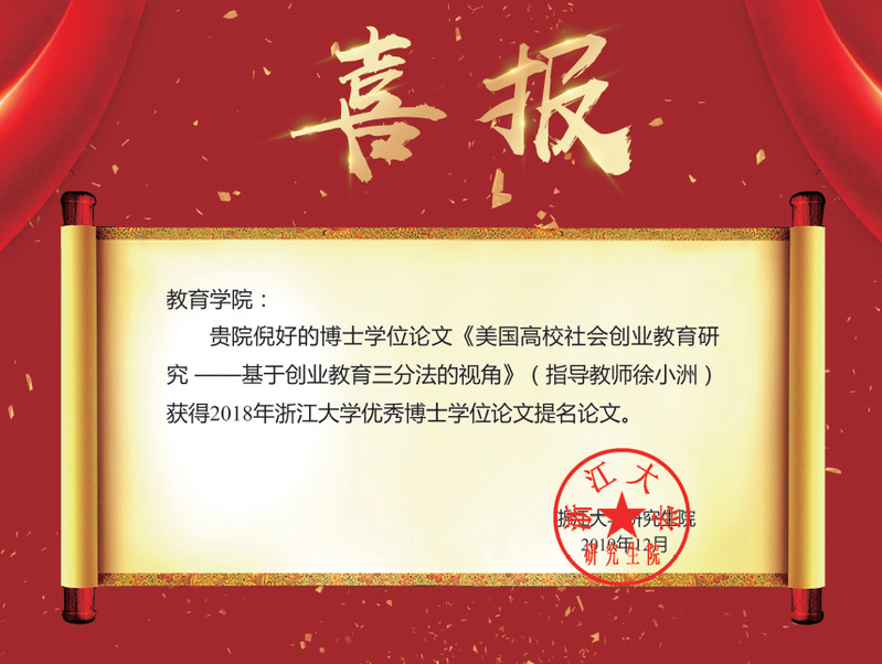喜报:我院倪好学位论文获2018年浙江大学优秀博士学位论文提名论文