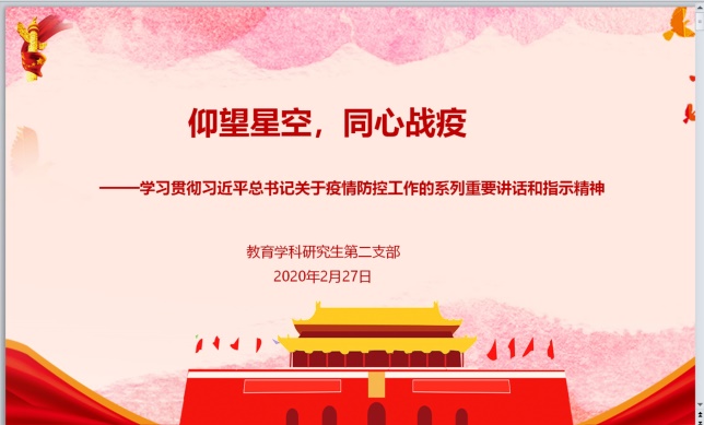 2月27日,教育学院教育学科研究生第二支部召开“仰望星空,同心战疫”线上主题党日活动,党支部书记王树涛老师主持会议。