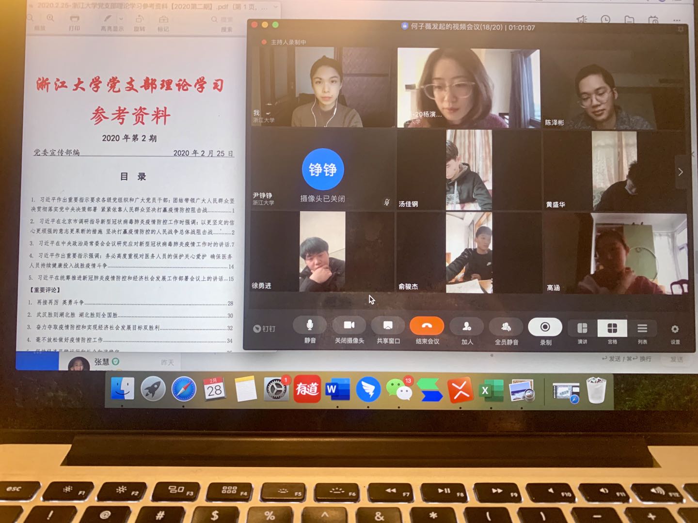 支部副书记何子薇主持会议,并带领大家集中学习了《中共浙江大学委员会关于进一步加强和改进党支部理论学习的意见》以及“浙江大学党支部理论学习参考资料”相关内容和指示精神。会议强调,要积极、主动、自主地学习思政理论知识,严格贯彻“三会一课”“交流研讨”“实践学习”“学习管理”等制度,进一步推进党支部理论学习制度化、规范化,提升理论武装的质量和实效,提高党员自身的理论水平和工作能力;同时结合习总书记在疫情期间作的重要指示,强调学生党员要以身作则,饱有热情和信心,坚持正确的舆论导向,做好党员的模范带头作用。