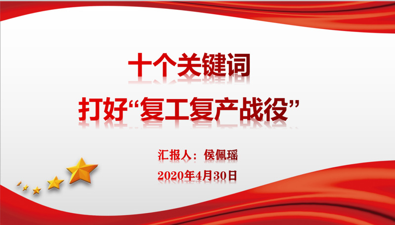 支部党员侯佩瑶同学汇报“十个关键词打好复工复产战役”主题微党课。总书记指出,“要抓紧推进经济社会发展各项工作,精准有序扎实推动复工复产,实现人财物有序流动、产供销有机衔接、内外贸有效贯通,把疫情造成的损失降到最低限度。”主题党课通过“统筹、有序、精准、减负、六稳、优先、民生、新功能、农业、开放”十个关键词,具体阐释了如何积极有效推动复工复产,打好复工复产战役。