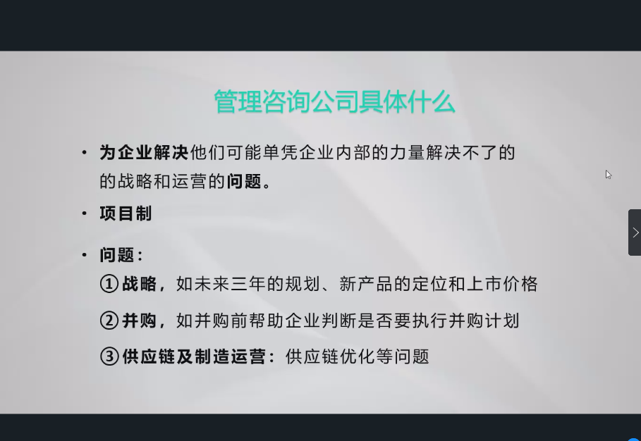 第四位是2019届体育经济与管理专业本科生陈易楠学长,现为德勤管理咨询(上海)有限公司咨询顾问。在介绍管理咨询这一行业、分析所需的素质能力之时,学长也让我们了解了企业就业的一些特点,并在如何找实习方面提供了诸多宝贵建议。