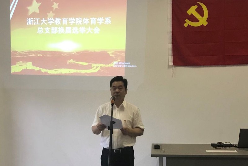 2020年6月19日上午9时,体育学系召开全体党员大会,选举新一届体育学系党总支委员。体育学系教工术科党支部、体育学系教工理论党支部以及体育学系教工退休党支部共计41人参加了会议。