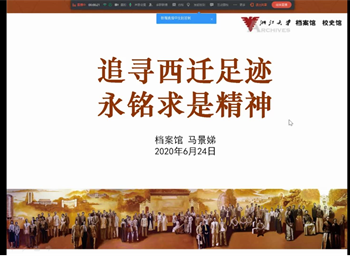 6月24日,教育学院和学校档案馆联合开展“先锋学子”专题活动。浙江大学档案馆馆长马景娣老师为各位同学带来题为“浙大西迁和求是精神”的主题报告专题报告。