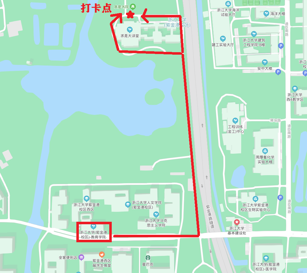 步行前往求是大讲堂并领取“健步福利卡”;步行回到教育学院大楼。