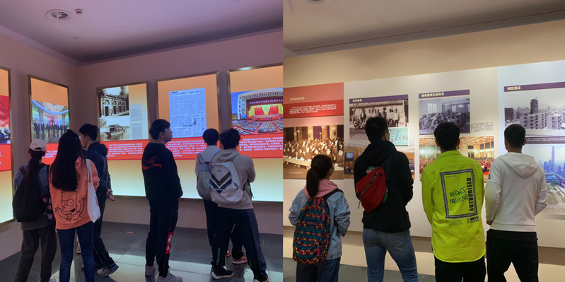在参观的过程中同学们全神贯注,不时的驻足讨论、或是拍照记录展板上的内容,用心学习、领悟精神内涵。