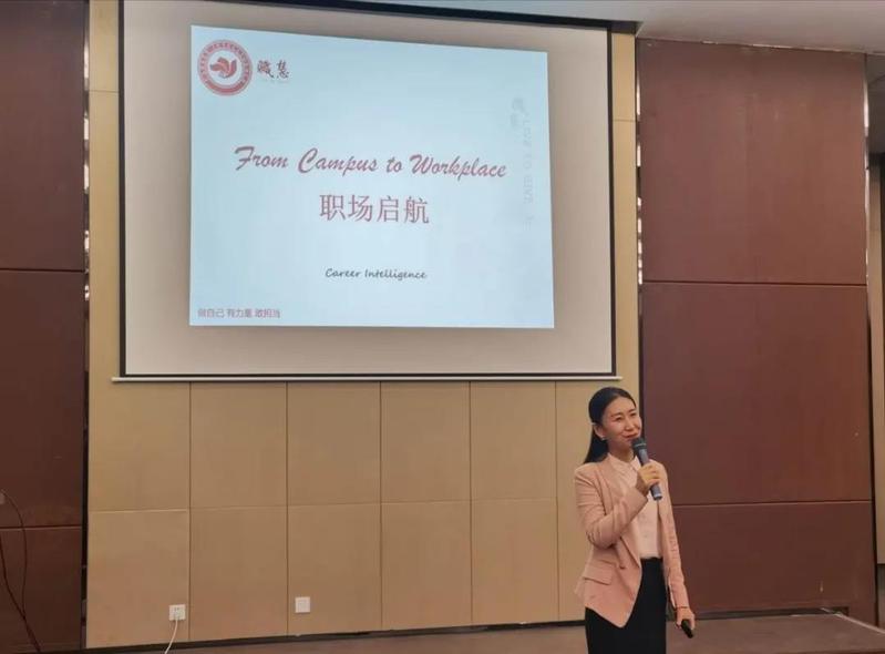 为了更好地帮助同学们完成从“校园人”向“职场人”的转型,会后,教育学院特别邀请了“职慧”公益的职业经理人夏雯君老师,给同学们上了一堂风趣幽默却又直击人心的职场启航课。