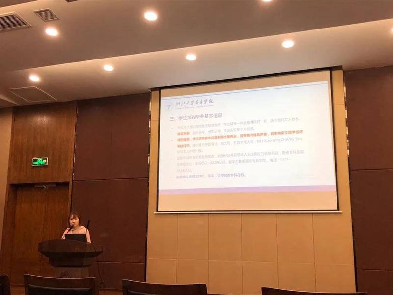 2020113日下午,浙江大学教育学院2021届毕业生就业动员大会在紫金港校区教育学院新大楼118报告厅举行。本科生教学科赵津婷老师、教育学院团委张静波老师、董晓萌老师出席大会,为全体应届本硕博毕业生们介绍毕业就业流程,讲解相关制度,提供就业指导。