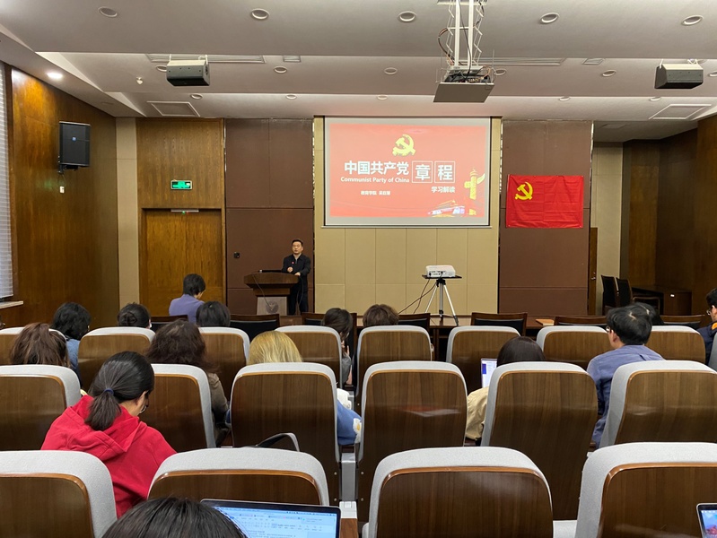 学院党委书记吴巨慧讲授了《中国共产党章程学习解读》主题党课。党课分党章的概述、党章的总纲、党章的条文以及如何学习遵守党章4个主题,详细而系统地讲述了党章的主要内容,深刻阐述了党章作为党的根本大法、全党必须遵守的总规矩的重大意义。尊崇党章、学习党章,自觉加强党性修养,是我们每一名共产党员的应尽义务和庄严责任。吴书记着重强调,学习党章要做到“五个结合”,加强“五个修养”,全院师生党员要全面了解和掌握党章基本内容,严格遵守党章各项规定,共同维护党章的权威性和严肃性,把党章的学习贯穿于学习、生活和工作中。