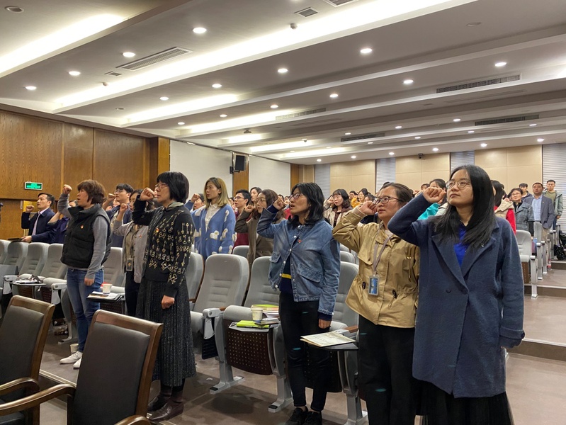 当天还进行了新党员宣誓仪式。学院2020年新发展党员代表、在场师生党员在吴巨慧书记带领下,面对党旗庄严宣誓,本次学习培训会在党员们铿锵有力的宣誓声中圆满结束。