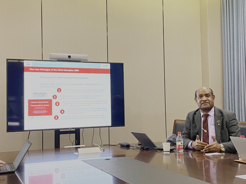 裴伯庸博士指出,目前全球教育面临六大挑战:(1)师资短缺,距达成全球2030教育目标还差6900万名教师;(2)文盲率高,全球有15%的成人是文盲,其中三分之二是女性;(3)教育资金不足,全球需要390亿美元的援助来填补每年教育财政缺口;(4)失学群体庞大;全球有2.63亿儿童和年轻人失学;(5)在低收入国家,只有14%的年轻人完成中等教育;(6)全球35%的失学儿童生活在冲突地区。裴伯庸博士最后强调,作为全球教育领导者,教科文组织将继续为世界各国提供教育建议,持续关注各国教育现状,促进全球教育的可持续发展。
