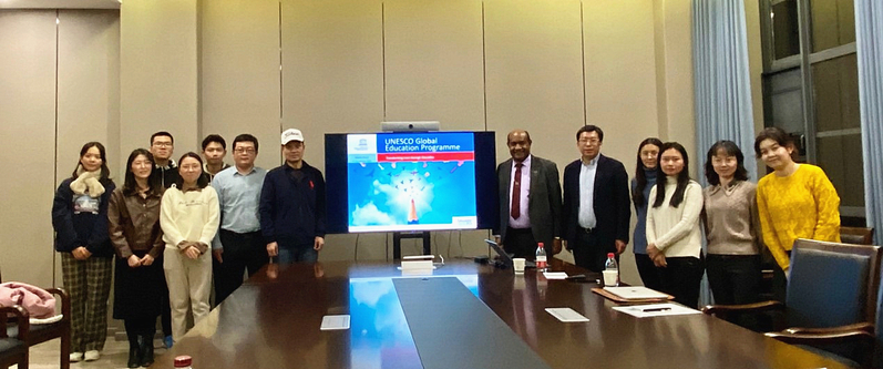 阚阅教授对裴伯庸博士的到来表示欢迎,并介绍了裴伯庸博士的工作经历。在轻松愉快的氛围中,裴伯庸博士在讲座中首先阐述了教科文组织的组织框架和工作职能。教科文组织是联合国专门机构之一,现有193个会员国和8个准会员,涵盖教育、社会与人文科学、文化、通信与信息、自然科学五大领域,执行“思想实验室”“标准制定者”“资料交换所”“能力培养者”“国际合作的催化剂”五大职能,2014-2021年的两大全球优先事项是非洲与性别平等。