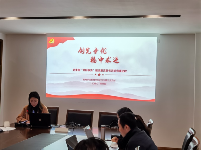 教育学科研究生第三党支部以“创先争优、稳中求进”为主题,围绕特色主题党日开展、支委党课宣讲团组建、党章学习小组建设等内容,推进支部“对标争先”建设