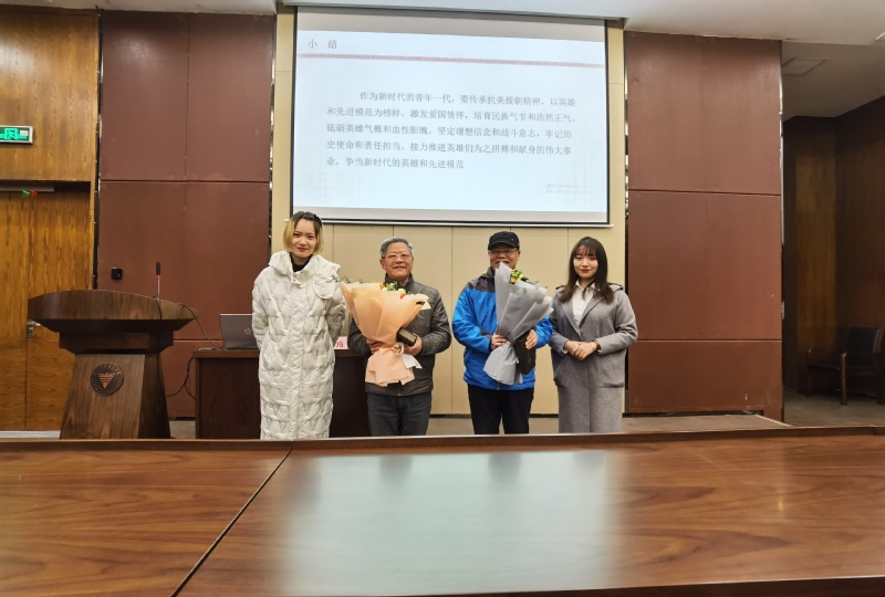 首先,李岳鹏老师以“抗美援朝丰碑永铸——纪念中国人民志愿军抗美援朝出国作战70周年”为主题,批判了历史虚无主义,充分肯定了抗美援朝的历史意义和现实价值,并援引了毛主席和习主席对抗美援朝战战争的评价,认为抗美援朝战争让新中国站稳了脚跟,打出了中国人的精气神,丰富了军队联合作战的经验,提高了全国人民的政治觉悟。接着,李岳鹏老师从英雄是抗美援朝的精神符号、抗美援朝精神是国家精神的具体体现、如何继承和发扬抗美援朝精神三个方面具体阐述了抗美援朝的丰碑功绩。最后,李乐鹏老师勉励大家:“作为新时代的青年一代,要传承抗美援朝精神,以英雄和先进模范为榜样,激发爱国情怀,培育民族气节和浩然正气,砥砺英雄气概和血性胆魄,坚定理想信念和战斗意志,牢记历史使命和责任担当,接力推进英雄们为之拼搏和献身的伟大事业,争当新时代的英雄和先进模范。”