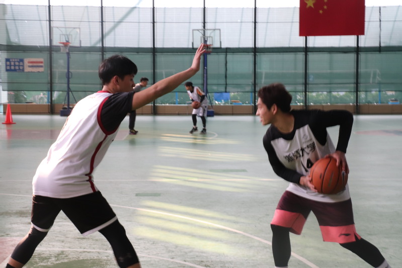 下午在风雨操场篮球馆拉开了篮球比赛的序幕。尽管室内体感冰凉,但选手们的热情高涨,李宽同学为大家介绍了几个专业性提升球感的练习动作以及投篮动作,在专业选手与同学们的游戏式教学中领会了篮球技巧。经过半小时的热身活动后,男子组比赛与女子组比赛同时吹响。