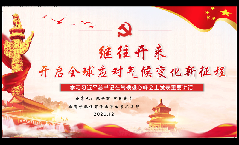 2020年12月28日,教育学院“一月一课大家讲”微党课竞赛第3讲在体育学系学生第二党支部开讲。张伊丽同学为大家带来了了题为“继往开来,开启全球应对气候变化新征程暨学习2020年气候雄心峰会精神”微党课。