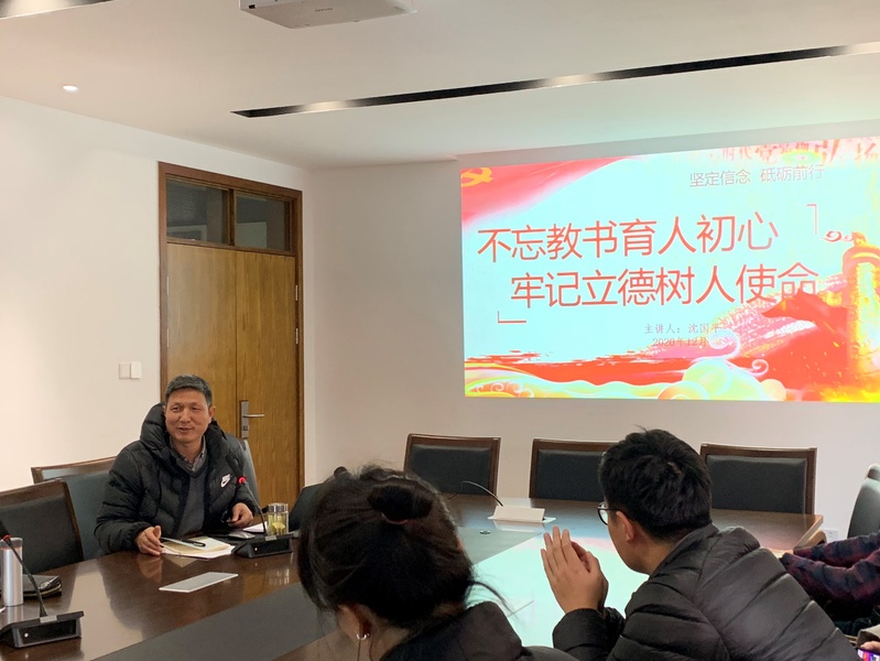 当天的党课由学院党委委员、体育学系党总支书记沈国平老师主讲。他带领大家从中国共产党人的初心、教育工作者的初心、体育学人的初心三个层面层层推进进行解读。中国共产党人的初心和使命是为中国人民谋幸福,为中华民族谋复兴。沈老师着重强调,不忘初心要求我们不忘心中有戒,严守纪律规矩。需要明确自己的底线意识,大到党纪国法,小到学校的考风考纪,要时刻警醒自己严格遵守各项章程规定,在各种场合用行动起到党员的先锋作用,要把党纪党规牢记心中而并非只是口头表述。“青年兴则国家兴,青年强则国家强”,传承和发扬红船精神,接过历史的接力棒,不忘初心砥砺前行是时代赋予教师和学生的重任。新时代教育工作者的初心,是用科学的方法教学育人,培养德智体美劳全面发展的社会主义建设者和接班人。教师是立教之本,兴教之源,要牢记三个“牢固树立”,做“四有”好教师。党课上,沈老师也提出了对同学们的希冀,要求学生党员以身作则,除了带头遵守党纪党规、校纪校规和考风考纪外,也要把尊师重道这一中华传统美德实践贯彻到日常学习和生活中。他号召体育学系师生党支部及党员发挥好党支部战斗堡垒作用、党员先锋模范作用,做新时代的好老师、好学生。