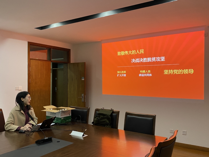 支部纪检委员胡俊华同志作“学习习近平总书记新年贺词”主题党课。她首先提到了习总书记在讲话中重点强调要“致敬伟大的人民”,在过去的多灾多难的2020年,是平凡铸就了伟大。随后,胡俊华同志又带支部成员解读了习总书记在讲话中对”脱贫攻坚”工作的论述。此外,胡俊华同志还指出习总书记强调我们应进一步深化改革,扩大开放,要以更大气魄深化改革、扩大开放,续写更多“春天的故事”。听完党课,唐璐靖同志从自己的经历出发,表示2020年是极不平凡的一年,面对突如其来的新冠肺炎疫情,中国军民众志成城,书写了中国特色的抗疫史诗,阐释了人间大爱。