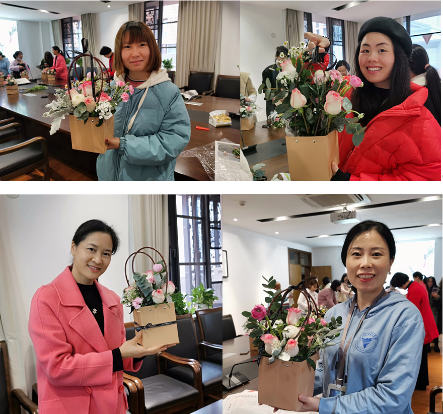 花香四溢的活动现场,洋溢着女教职工们的欢声笑语。在这个春意盎然的美好时节,与花为伴、以花感人,花艺课堂舒缓了忙碌工作的紧张情绪,提升了生活品质,促使大家以更积极、热情、饱满的状态投入到日常工作中。