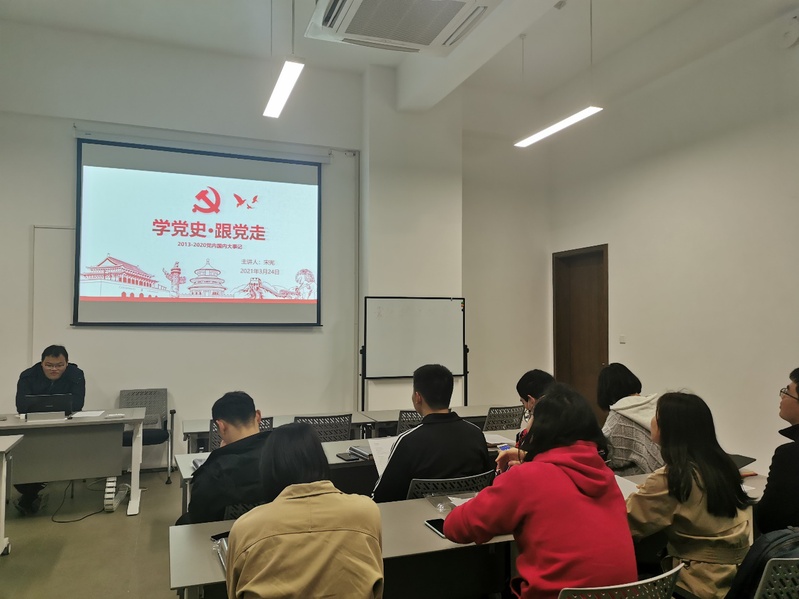会议开始,宋宪同志带领支部成员学习了习近平总书记在党史学习教育动员大会上的讲话精神。习近平总书记强调,在全党开展党史学习教育,是党中央立足党的百年历史新起点、统筹中华民族伟大复兴战略全局和世界百年未有之大变局、为动员全党全国满怀信心投身全面建设社会主义现代化国家而作出的重大决策。随后,宋宪同志带领大家回顾了十八以来,中国特色社会主义进入新时代的重要人物、重大会议及理论等。他总结到,我们应该用党的奋斗历程和伟大成就鼓舞斗志、明确方向,用党的光荣传统和优良作风坚定信念、凝聚力量,用党的时间创造和历史经验启迪智慧、砥砺品格。