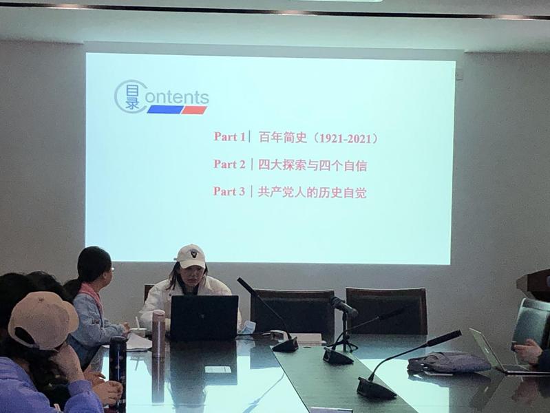 支部委员周艺霖同学作《中国共产党的百年探索与历史自觉》主题党课,带领支部师生回顾了中国共产党的百年历史以及制度、理论的形成与完善。其内容包括党的百年历程、五次历史性转变、百年来共产党人的道路探索与道路自信。历史见证了中国共产党的成熟与发展,共睹了在中国共产党带领下中国特色社会主义道路的筑成。