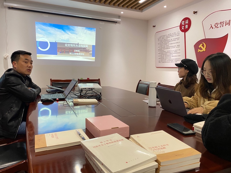 会议首先由王树涛老师进行了一些学术经验的分享,王老师的分享充满了他在学术写作过程中积累的有益经验。从写作需要严谨的方法,到写作中好文献的选择以及如何更好地投稿都做了详细的讲解。在王老师的分享中还向各位研究生党员强调了要端正学术态度,对待所有的文章都应该严肃认真。最后,王老师还给大家详细讲解了论文的各个部分应该如何组织,在内容上怎样才能更有逻辑性。支部党员在学习过程中都十分认真,不时低头记录,大家都获益匪浅。