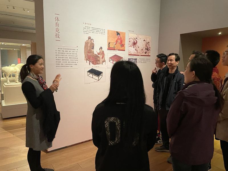 首先,支部成员一起参观了艺术与考古博物馆。作为四大文明古国之一,各个时代的文字拓本,展现着我国源远流长的古代文化。在展厅4,以“乐居长安”为主题,浙江大学与西安市文物局联合主办的文物展:通过长安人的城、衣饰、器用、饮食、出行、娱乐等六个单元,全方位展示了唐朝长安人生活的风貌。富足、乐观的长安城,人民的娱乐生活丰富多样,体育竞技也得到了蓬勃的发展,蹴鞠、舞剑、拔河、投壶、打马球等各项运动也久盛不衰,展现了唐朝人民安居乐业的祥和气象。