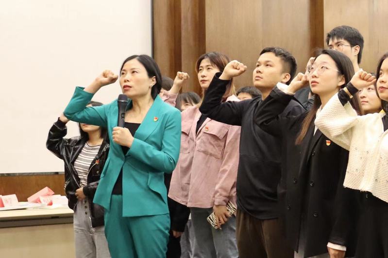 当天还举行了预备党员入党宣誓仪式。在党委副书记包松老师领誓下,全体预备党员整齐排列,高举右拳,庄重宣誓。在回荡的誓词中,教育学院全体党员重温庄严的入党誓词,并再一次回归初心,坚定入党的信念和决心,继续在投身全面建设社会主义现代化国家的中国特色社会主义道路上扬帆起航。