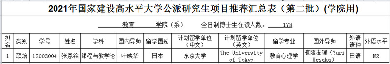 根据研究生院关于浙江大学2021年“国家建设高水平大学公派研究生项目”实施办法,经学生本人申请、学院专家组评审,现将2021年“国家建设高水平大学公派研究生项目”推荐名单予以公示如下: