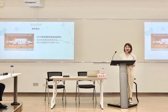 胡亚梦学姐分享了自己当时职业选择的心路历程、安徽选调的政策和应试准备和她在乡镇基层的工作经验。她通过讲述自己的工作中的一些小故事,告诉大家:在基层工作要放下架子,融入其中,并认真对待每一项工作,有时在工作中可能会遇到一些委屈和不公,自己要做好心理建设,不断地继续学习。只要是你觉得有意义的工作,你就会从中拥有获得感和成就感。