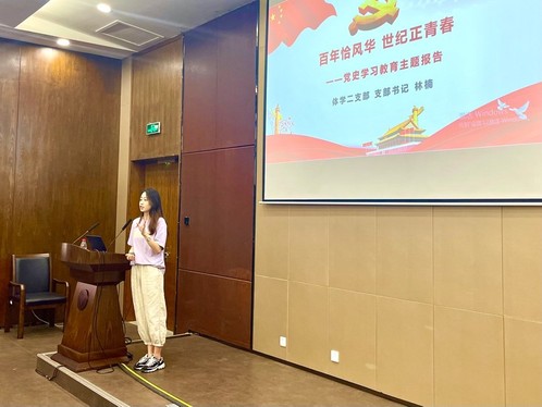 为深入贯彻落实党中央精神和学校学院党委关于党史学习教育的工作部署安排,进一步学习习近平总书记近期系列重要讲话精神,6月9日中午,“百年恰风华世纪正青春——体育学系学生第二支部党史学习教育暨支部书记讲党课”活动在教育学院118报告厅举行。本次党课由支部书记林楠老师主讲,支部全体党员及入党积极分子约60人参加。