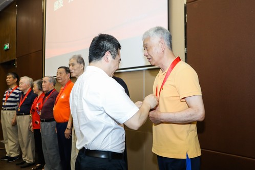 大会在庄严的国歌声中拉开序幕。包松副书记宣读学院16位“光荣在党50周年”纪念章颁发对象名单后,吴巨慧书记为当天到会的8位老党员代表颁发了纪念章。