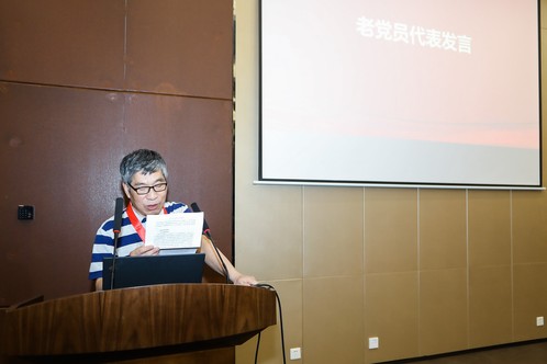 老党员代表、曾任教育学院党委书记的戚谢美老师在发言中表示,在伟大的中国共产党成立100周年之际,党中央颁发“光荣在党50周年”纪念章,充分彰显了以习近平同志为核心的党中央对老党员的尊重、关心和爱护,也是对全体党员的精神鼓舞与使命鞭策。老党员们虽已不在工作岗位上,但一定不忘初心、牢记使命,力尽所能地发挥各自的余热,用行动和誓言践行共产党员的初心和宗旨。戚老师满含深情地带领全体党员回顾了中国共产党从建党到新时代的百年旅程,指出,没有共产党,就没有新中国;没有共产党,就没有社会主义的今天;没有共产党,就没有中华民族的伟大复兴。他寄语2021届毕业生同学,在走上新的学习、工作岗位时,仍旧不忘初心,牢记使命,为实现第二个百年奋斗目标、实现中国民族伟大复兴的中国梦而奋斗。