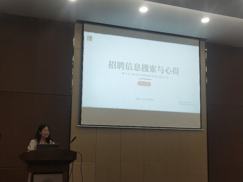2021623日下午,浙江大学教育学院2022届毕业生动员大会在教育学院新大楼118报告厅举行。教育学院党委副书记包松老师、团委书记张静波老师、团委副书记董晓萌老师、研究生教学科苏洁老师、本科教学科赵津婷老师五位教师及2022届本硕博学生参加大会。