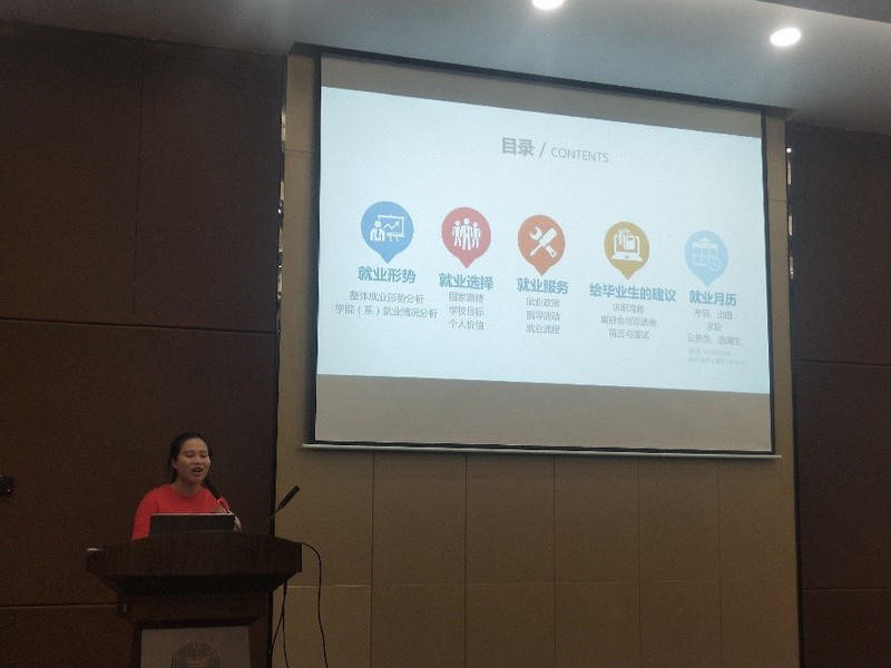 团委书记张静波老师就毕业生求职的相关信息和建议进行了分享,主要是从就业形势、就业选择、就业服务、给毕业生的建议、就业月历五个方面展开,为大家提供了详实的指导。