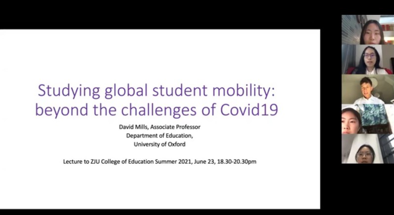 6月23日,牛津大学David Mills教授做了一场题为“新冠肺炎疫情挑战背景下的全球学生流动研究”的报告。讲座生动活泼,穿插多个由实践性问题组成的小组讨论。Mills教授为学生们理解后疫情时代的高等教育提供了一个全新的视角,促使同学们认识到未来教育突破传统物理空间和人员流动的限制、开启国际学术交流合作新常态的必要性。