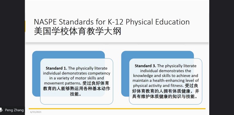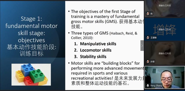6月15日晚,美国东斯特劳斯堡大学教授、美国体育与健康教育协会院士张鹏教授作题为“青少年力量训练”讲座。张教授提出了传统的青少年训练模式(很少进行力量训练)是否合理的问题,进而引出演讲的论点。他与同学们交流分享了教授青少年体育的实践经验及相关建议,还通过分享弹力球训练视频向同学们提出在实际教学过程中是否使用这种训练方法的问题,并简单介绍了训练青少年的方法。