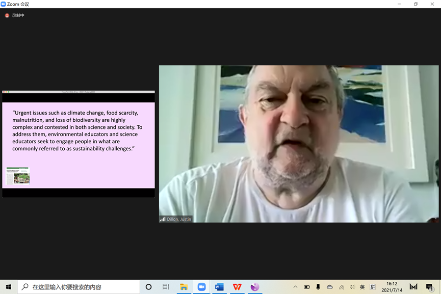 7月14日下午,英国埃克塞特大学教育研究生院Justin Dillon教授就新冠疫情下的科学、环境和健康等领域的新教学法为主题向同学们展开报告。Dillon教授是科学与环境教育领域的国际权威学者,担任英国环境教育学会的主席,同时也是高影响因子期刊Studies in Science Education的主编。Dillon教授首先介绍了科学、环境与健康的教育内容在学校的课程呈现形式,提出需要更新既有课程结构和内容,并结合欧美等国家现代的科学教育案例研究阐释说明。Dillon教授从新冠疫情波及全球的背景出发,讨论了社会公正在塑造后疫情时代科学教育未来的重要性。他提出,应邀请社会团体参与解决这一紧迫的科学教育问题,促进科学教育发展。讲座后,同学分成小组对讲座内容进行探讨,并同教授就科学家在科学教育中的身份与作用等问题进行了讨论。