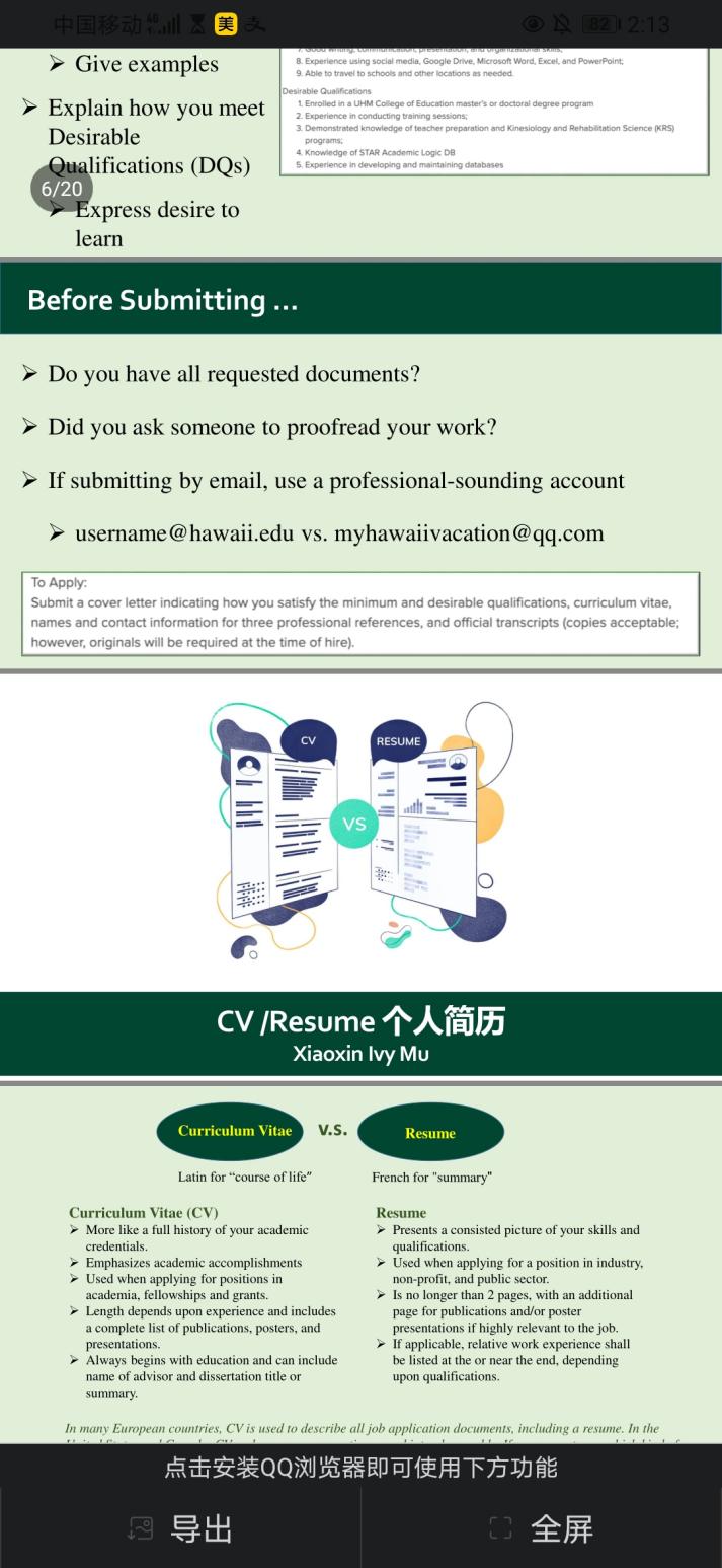 根据参加项目学生的专业背景情况,本期暑期学校还专门邀请到夏威夷大学体育系运动机能学领域的华裔教授Xu Di老师为大家进行专业类授课。考虑到讲座内容的专业性,Xu Di老师非常贴心地用中英文混合的教学方式来帮助同学们理解,讲座中还邀请了本领域的Lin Chen学姐为大家分享了在夏大的专业学习情况。