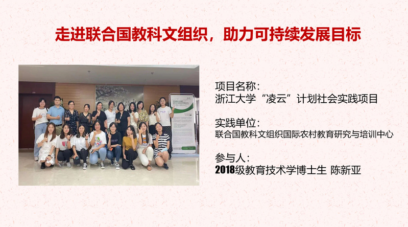 会议同时邀请了2021年暑期参加社会实践的党员同志作心得分享。2017级教育史博士生张筱菲和谢佳璐同志、2018级教育技术学博士生陈新亚、2020级教育史博士生钟伟春分别介绍了各自在西湖区委统战部、海宁市教育局、联合国教科文组织驻华机构、浙江教育出版社的实践项目与心得体会。大家表示,在社会一线参与各领域工作,通过一件又一件具体而又实际的工作,学会了许多待人接物和工作处事的方法,这也给未来走出校门、服务社会积累了宝贵的经验财富。