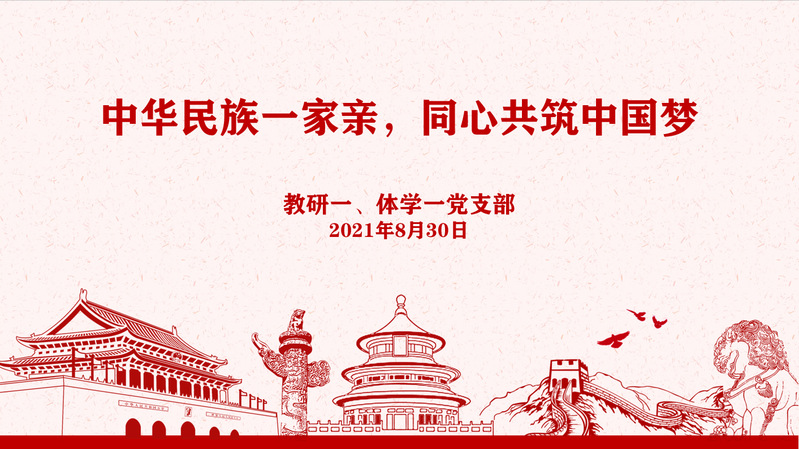 2021年,是中国共产党百年华诞,也是西藏和平解放70周年。在深入开展“四史”教育的同时,开展西藏地方和祖国关系史教育,对于引导师生树立正确的国家观、历史观、民族观、文化观和宗教观具有重要意义。8月30日晚,教研一支部、体学一支部举行“中华民族一家亲,同心共筑中国梦”为主题的联合党日活动。活动以腾讯视频的形式,面向教研一、体学一、体学二支部全体党员同志、入党积极分子举行,活动由教研一支部书记苏洁主持。