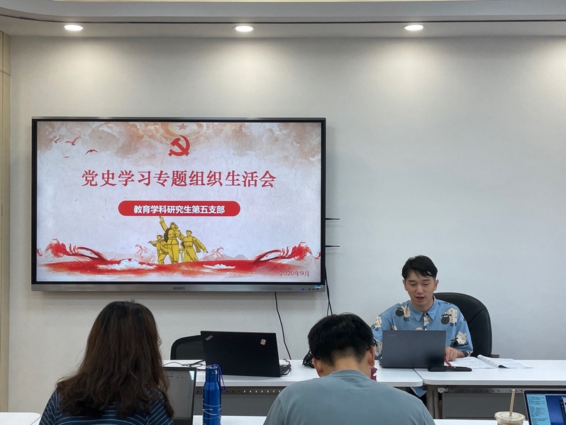 2021年9月10日,教育学院教育学科研究生第五党支部于教育学院508教室开展了党史学习教育专题组织生活会。本次活动由支部副书记姚超主持,教育学院副院长阚阅教授应邀参加了本次活动。