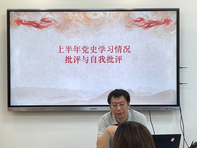 接着,支部副书记姚超就就支部上半年党史学习教育开展情况进行了小结,支部全体成员也对个人党史学习教育学习情况进行了批评与自我批评,通过本环节,支部与个人对上半年来党史学习情况进行了汇报,深入剖析了不足之处,并明确了后续整改措施。
