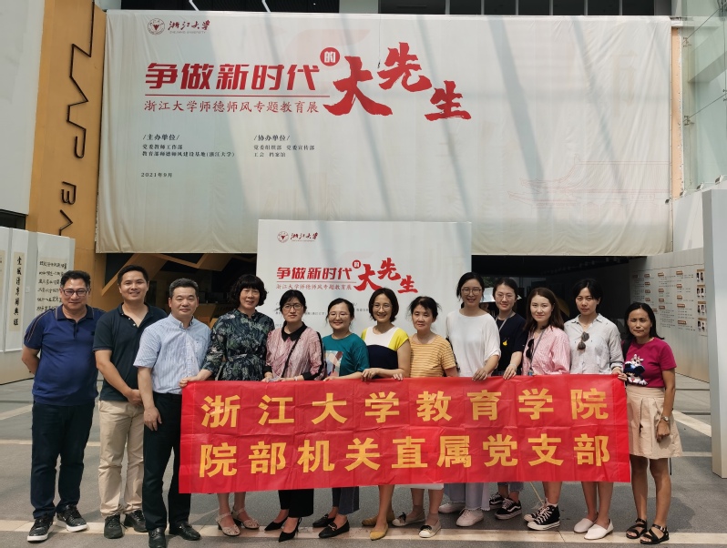 2021年9月28日中午,院部机关直属支部开展师德师风教育主题党日活动,组织支部党员赴紫金港校区月牙楼参观“争做新时代的‘大先生’——浙江大学师德师风专题教育展”。