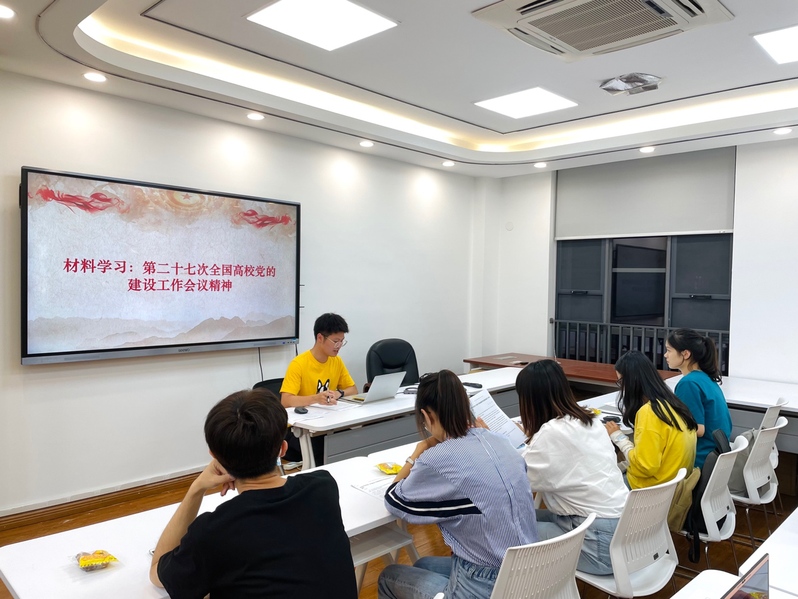 会议伊始,支部三位新任支委潘娜瑛、顾超、王雅同志分别做自我介绍并阐述了未来的工作设想。随后,宣传委员顾超传达了第二十七次全国高校党的建设工作会议精神,带领大家集中学习了《中国共产党普通高等学校基层组织工作条例》,让大家更深刻地领会与自身所学的高等教育学息息相关的政策文件。当天,大家还重温了习近平总书记“七一”重要讲话精神以及关于加强高校党建工作的重要论述。