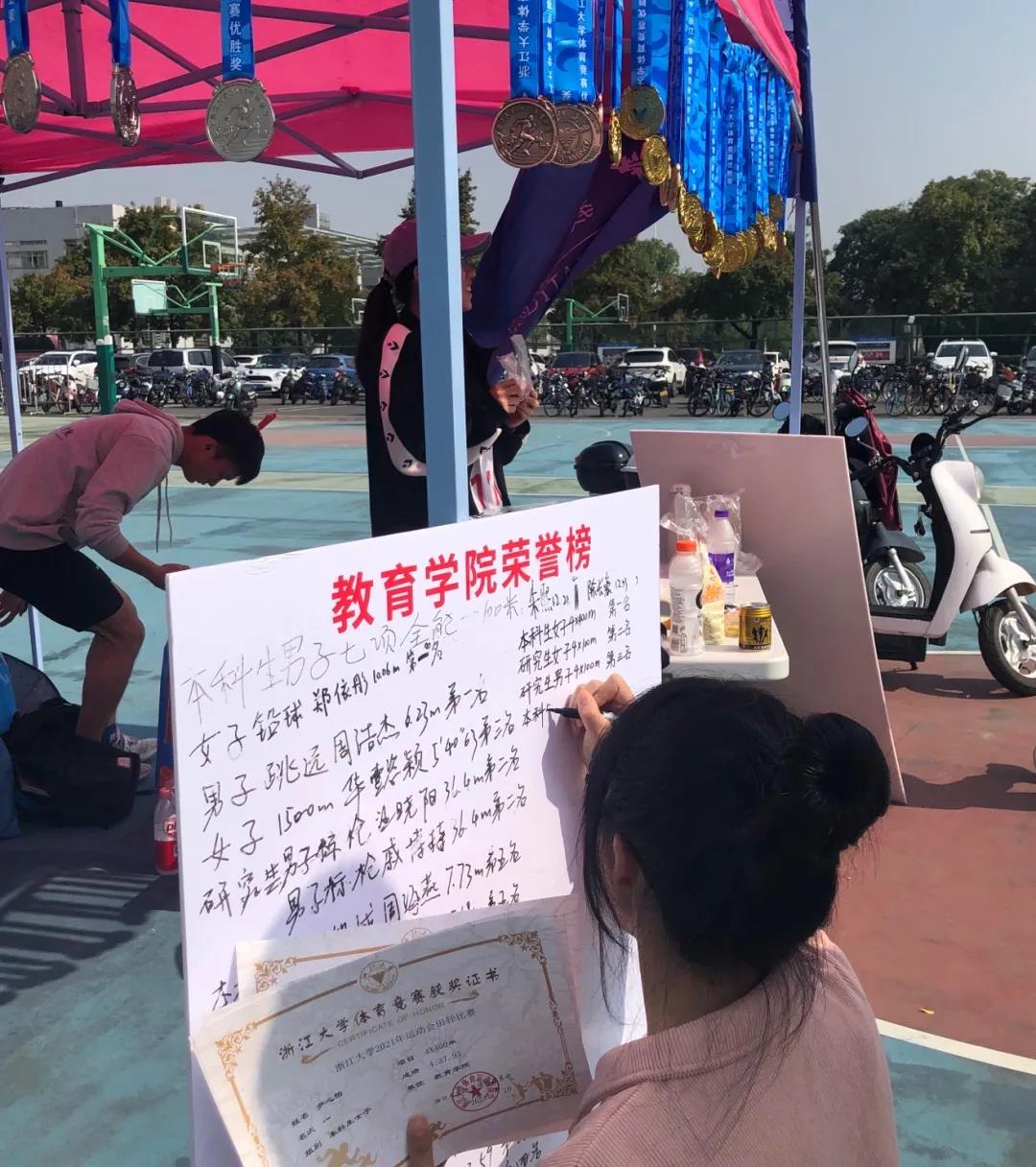 2021年10月23日,在辉煌明朗的秋日长空下,在沁人心脾的桂花气息里,浙江大学2021秋季运动会落下帷幕。为期两天的校运会里,教院学子共计夺得金牌43块,银牌10块,铜牌3块,总分位列本科生组第一名,再次创造了属于教院的奇迹。